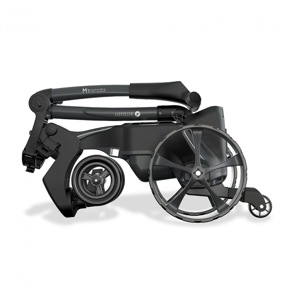 Winner of the My Golf Spy ‘Most Wanted’ award, the compact-folding M7 REMOTE features a rechargeable handset, removable anti-tip wheel, and automatic Downhill Control technology for the ultimate in responsive control.